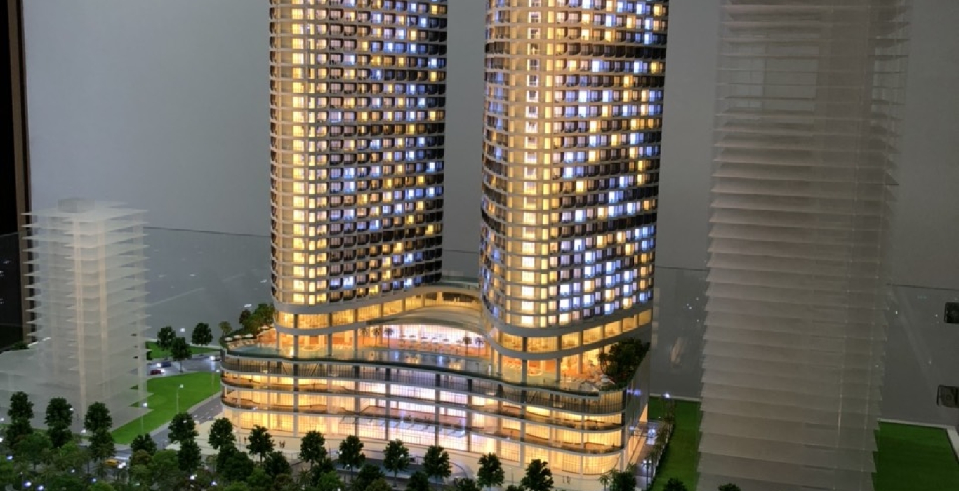 Mô Hình Kiến Trúc Dự Án Ánh Dương Complex Đà Nẵng mang phong cách hiện đại, thiết kế sang trọng, hòa quyện thiên nhiên biển, tạo điểm nhấn kiến trúc nổi bật cho thành phố.